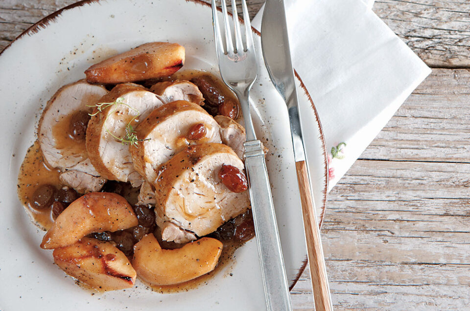 Ψαρονέφρι με κυδώνια και σταφίδες σε σάλτσα κονιάκ