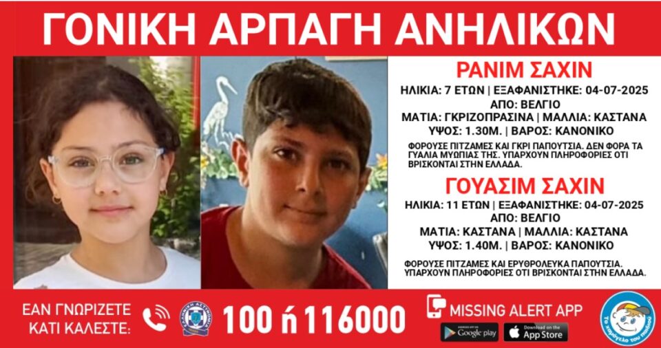 Το «Χαμόγελο του Παιδιού» ενημερώθηκε από τον συνεργαζόμενο φορέα της Ευρωπαϊκής Ομοσπονδίας για τα Εξαφανισμένα και Σεξουαλικά Κακοποιημένα Παιδιά (Missing Children Europe – ΜCE) του Βελγίου- «Child Focus», για την γονική αρπαγή της Shaheen Ranim, 7 ετών, και του Shaheen Wasim, 11 ετών, παλαιστινιακής καταγωγής.