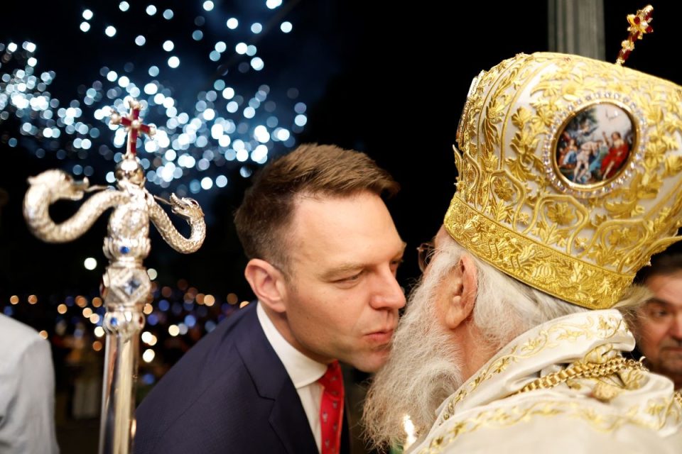 Ο μητροπολίτης Κερκύρας Νεκτάριος – λαύρος εναντίον του νόμου για τον πολιτικό γάμο των ομοφυλοφίλων – όχι απλώς δέχθηκε, το βράδυ της Ανάστασης, τον αρχηγό της Αξιωματικής Αντιπολίτευσης Στέφανο Κασσελάκη και τον σύζυγό του Τάιλερ, αλλά και τους ησπάσθη …αναστασίμως!
