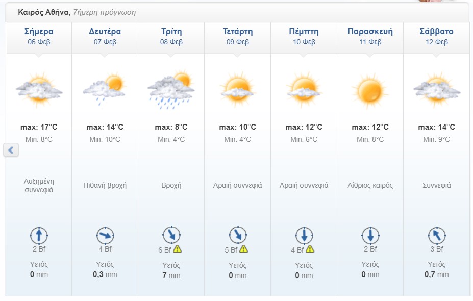 και το νότιο Αιγαίο 7 και από το απόγευμα τοπικά 8 μποφόρ. Κατά τη