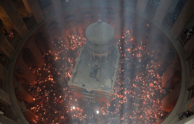 Με μεγαλοπρέπεια έγινε στα Ιεροσόλυμα, η τελετή Αφής του Αγίου Φωτός στον Πανάγιο Τάφο, που για πρώτη φορά είχε τόσο λίγους προσκυνητές.