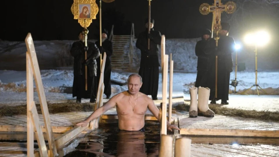 Ο Ρώσος πρόεδρος Βλαντιμίρ Πούτιν, σε αντιπαραβολή με τον ταλαιπωρημένο υπέργηρο πρόεδρο των ΗΠΑ Τ.Μπάιντεν, έκανε μια βουτιά στα παγωμένα νερά του ποταμού Μόσκοβα (παραπόταμου του Βόλγα) για να τιμήσει την ορθόδοξη εορτή των Θεοφανίων (βάσει του παλαιού ημερολογίου) τις πρώτες πρωινές ώρες της 19ης Ιανουαρίου.