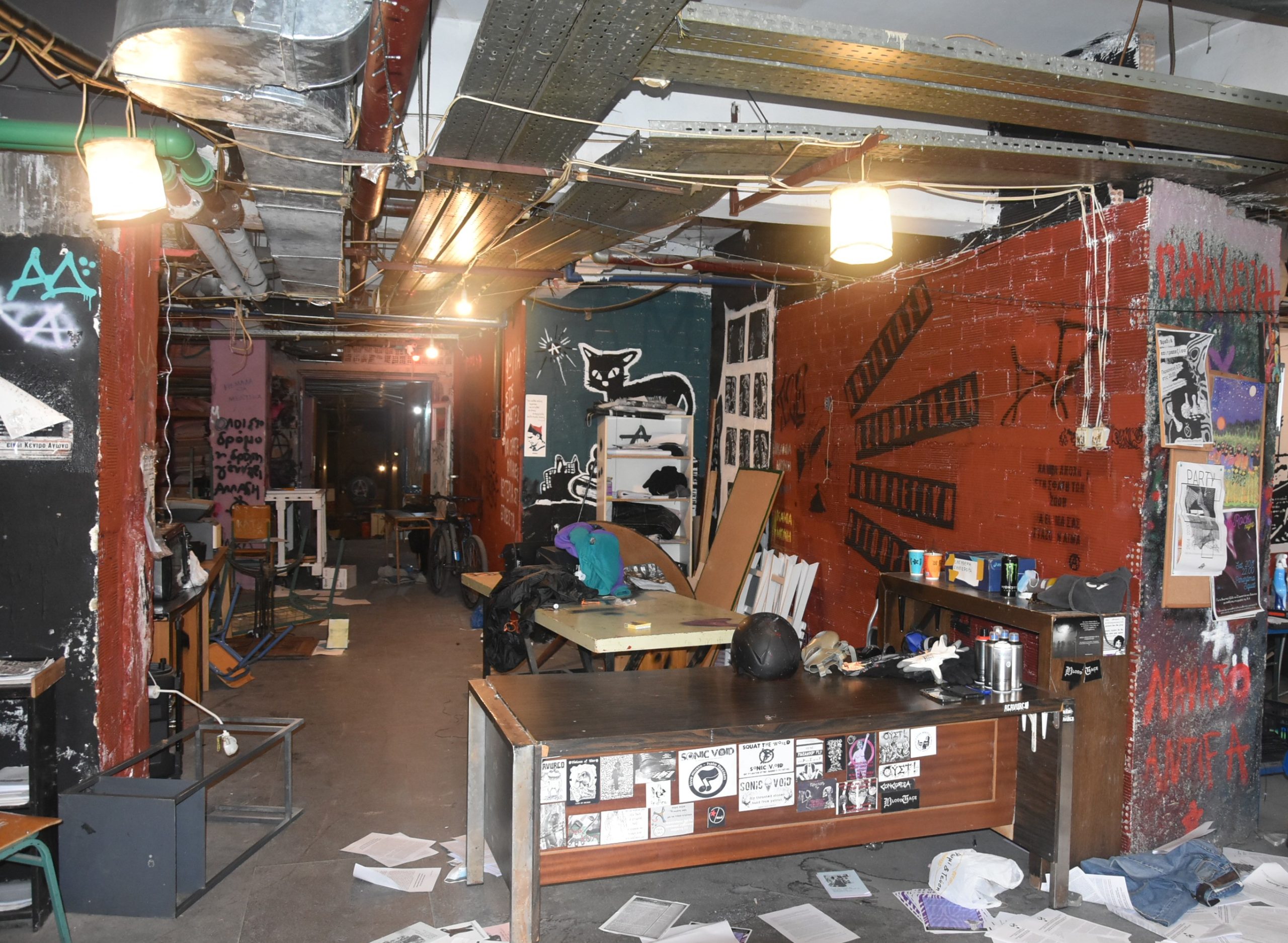 - φιαλίδια υγραερίου (γκαζάκια), κενές γυάλινες φιάλες, στουπιά, πλαστικά μπιτόνια με υπολείμματα βενζίνης και κροτίδα μεγάλης ισχύος, πρόσφορα για την κατασκευή εμπρηστικών και εκρηκτικών μηχανισμών,