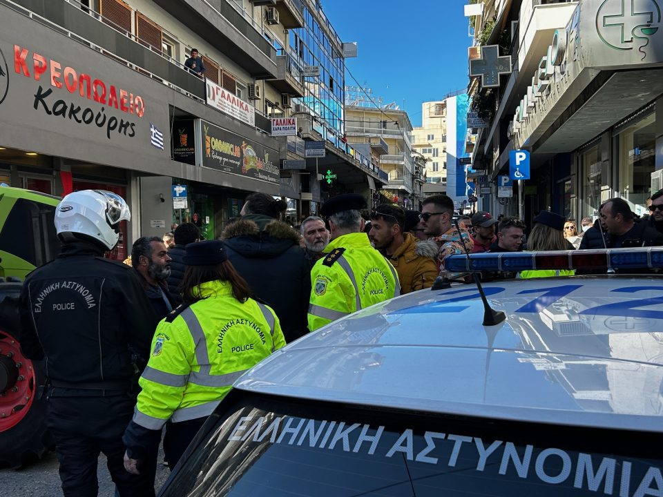 Τελικά η κατάσταση εκτονώθηκε μετά από λίγα λεπτά και τα τρακτέρ συνέχισαν τη διέλευση τους προς την πλατεία.