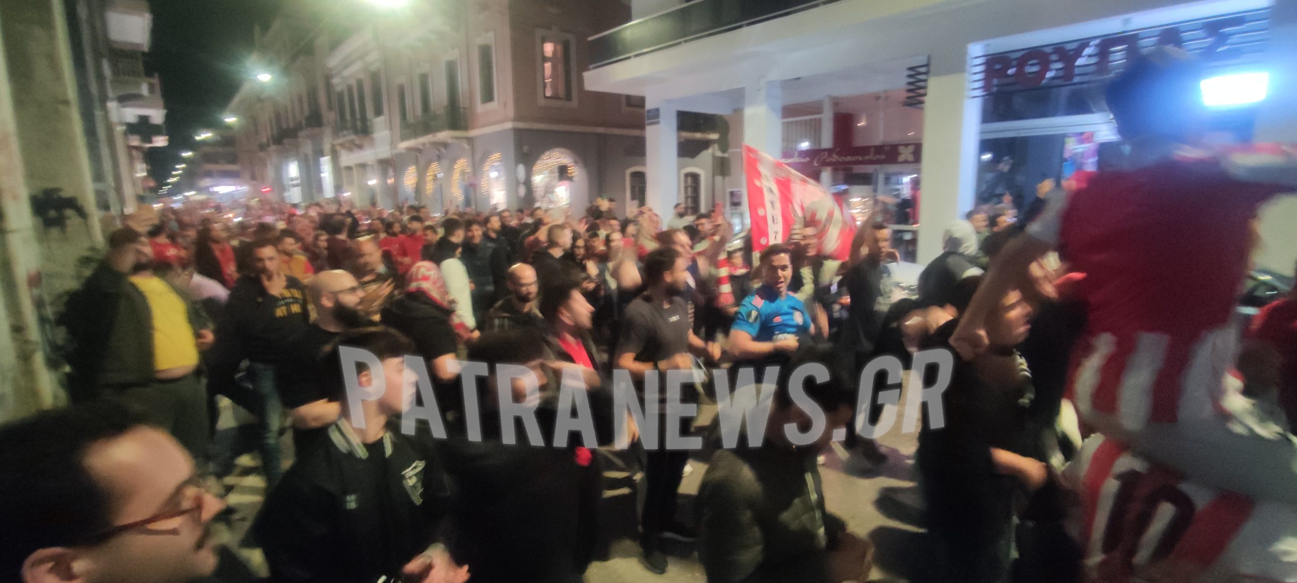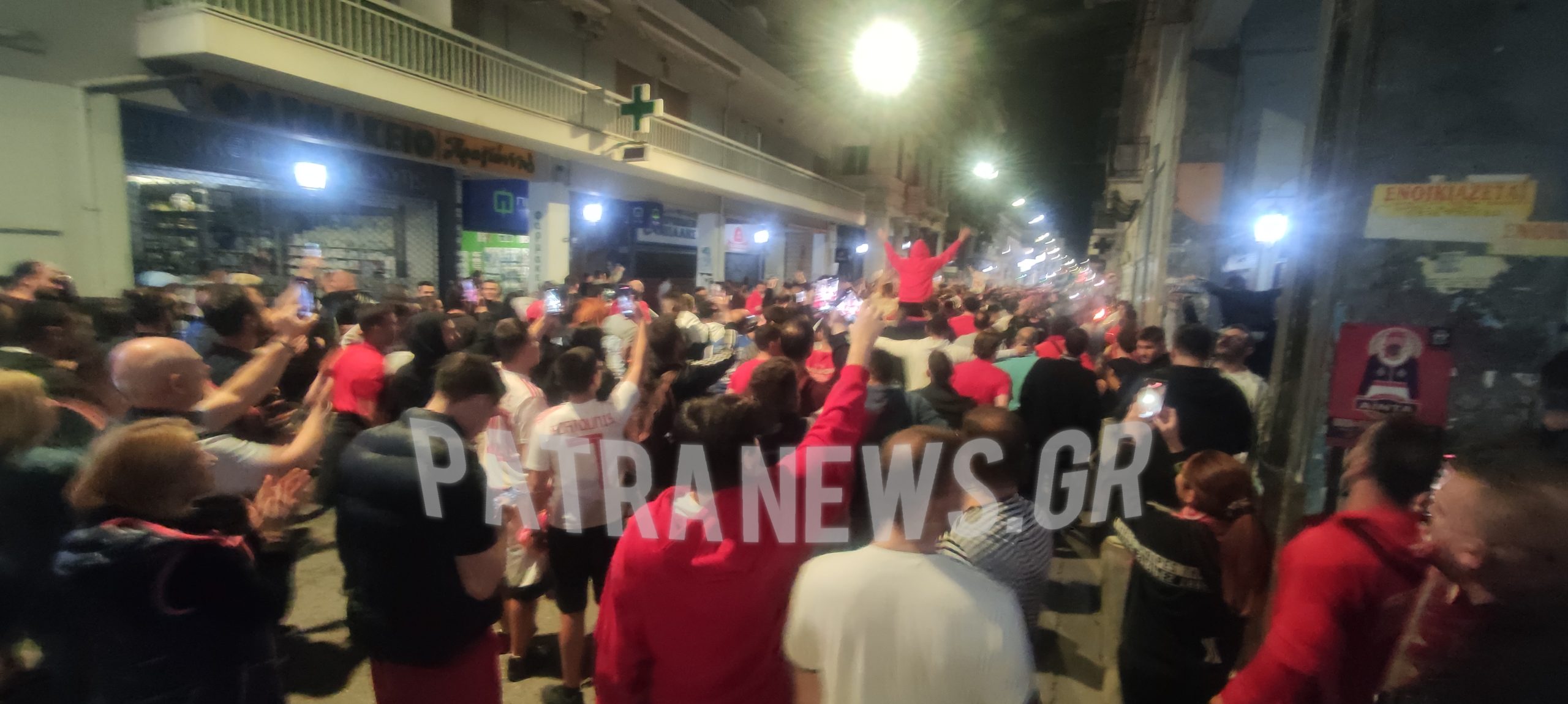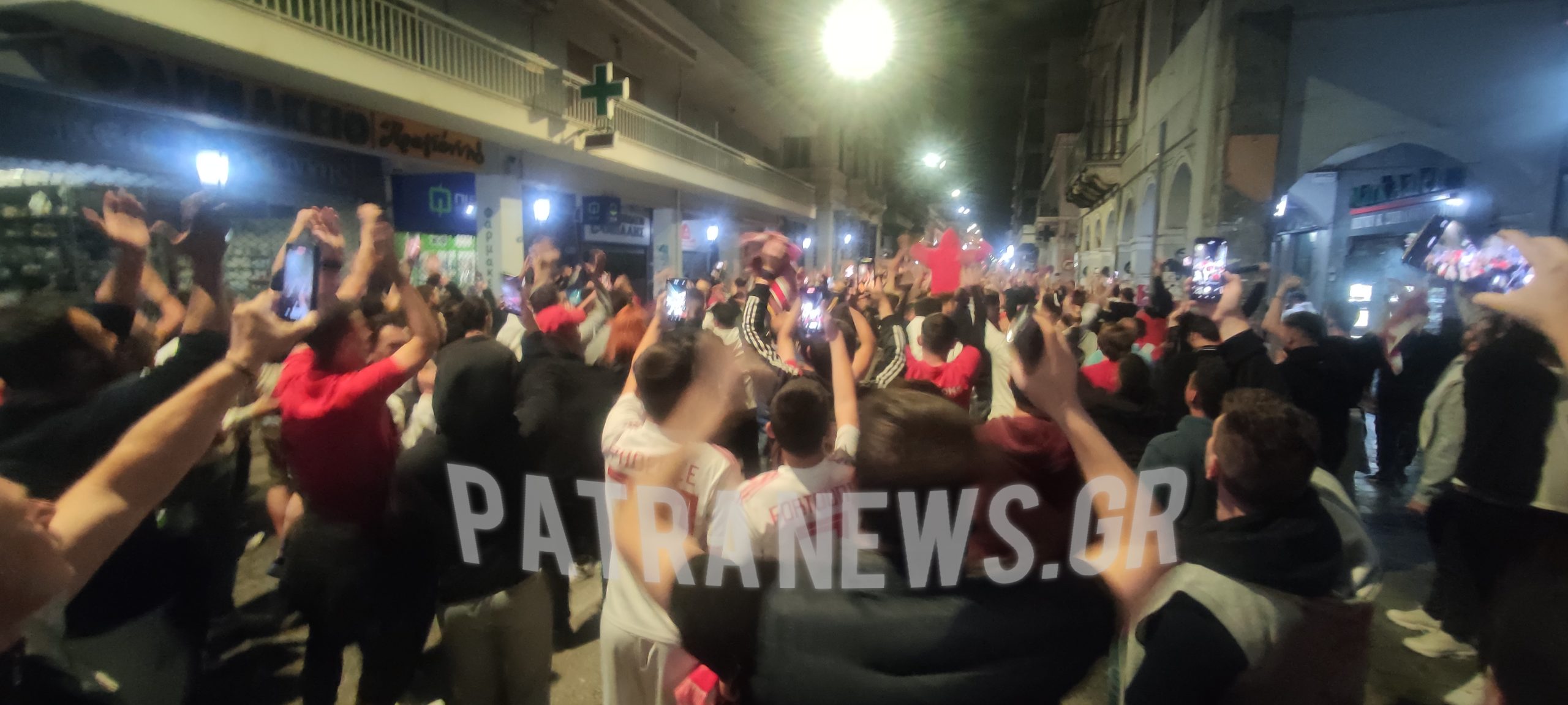 Σκηνές παροξυσμού στο κέντρο της Πάτρας, από χιλιάδες οπαδούς και φίλους του Ολυμπιακού, που πανηγυρίζουν με πορεία στις κεντρικές οδούς και την πλατεία Γεωργίου, τη μεγάλη νίκη της ομάδας τους επί της Άστον Βίλλα με 2-0 και την πρόκριση του, στο τελικό του Conference League!